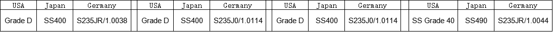 | Notas típicas | ASTM A36, A283, A572 Gr.50 EN 10025 S235JR/S275JR/S355JR JIS G3101 SS400 Outras normas e níveis estão disponíveis mediante solicitação. |